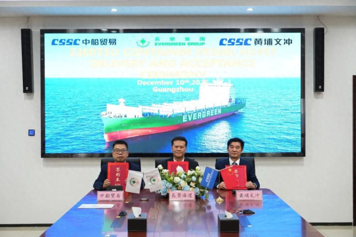 12月10日,中船黄埔文冲船舶有限公司为长荣海运建造的2300TEU集装箱船“EVER WORLD”轮顺利交付并于当天离厂启航,较合同期提前整整6个月。这是系列船中的第11艘,也是黄埔文冲与长荣海运不断深化合作、协同进步的有力见证。